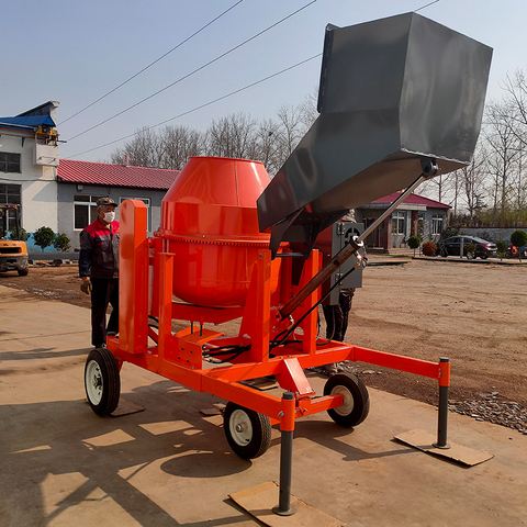 Mezclador de hormigón de tambor basculante de carga automática de 500L de potencia de motor diésel con cuerda de alambre tolva de elevación cabrestante mezclador de tambor